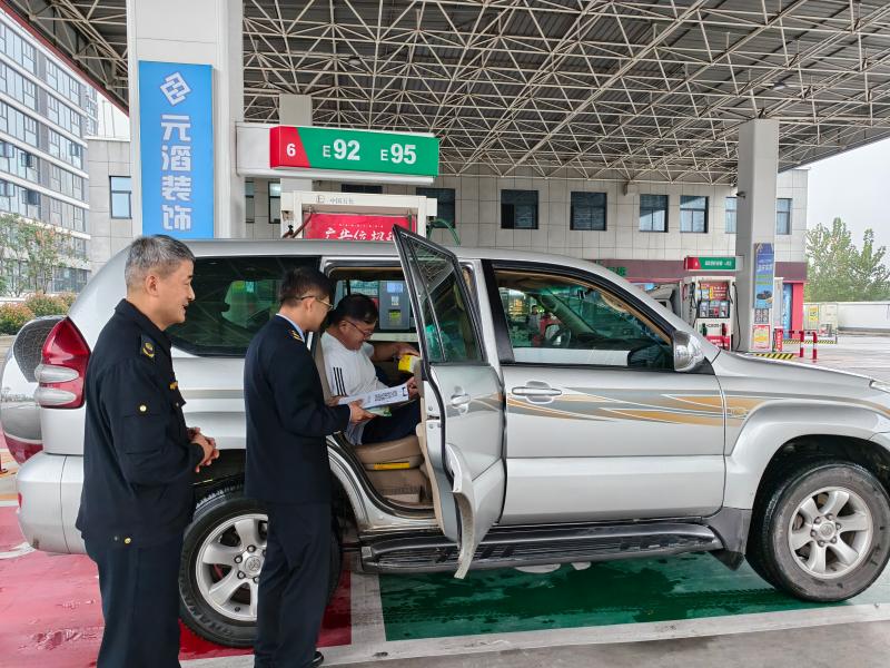 在中石化宿州加油站,加油员化身“安全宣讲员”,为加油驾驶员发放宣传资料,提醒其注意车辆防火、用电安全及应急处置要点,同时宣传人员结合近期雨季和秋季特点,详细讲解安全驾驶要点、车辆涉水应急处置知识,以及日常行车中常见交通安全隐患的排查方法。