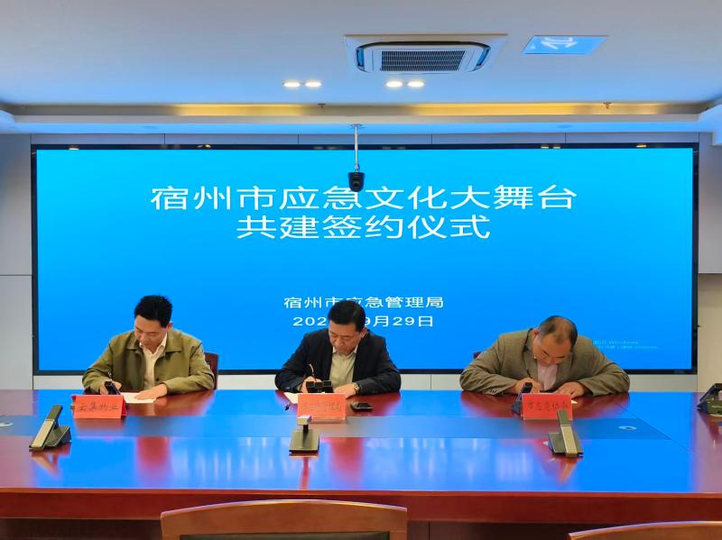 9月29日,市应急管理局与市应急协会、云集文化街物业公司举行“宿州市应急文化大舞台”共建签约仪式。市应急管理局副局长雷鸣出席签约仪式。